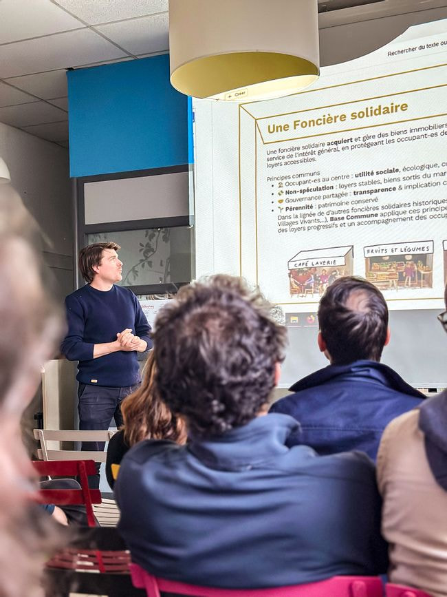Base Commune est une foncière solidaire structurée en SCIC, agréée ESUS (Entreprise solidaire d’utilité sociale), et basée à Paris, portant des projets dans la France entière dont son objet est la sécurisation de locaux de rez-de-chaussée au profit des acteurs et actrices de l’ESSE. Elle dispose d’un savoir-faire d’ingénierie financière, de mobilisation de fonds, de structuration technique et administrative nécessaire à ce type d’opération.